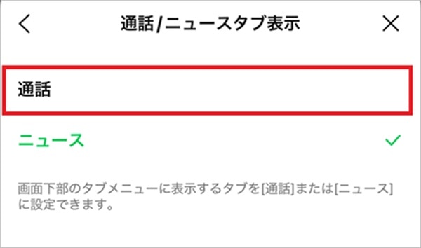 LINEアプリの「ニュース」タブは「通話」タブに変更が可能です。