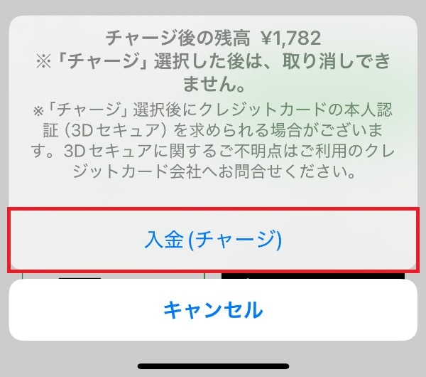3.チャージする金額をタップ(「その他」から細かな金額も選べます)