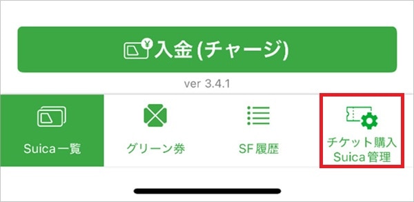 2.トップページで「チケット購入Suica管理」をタップ