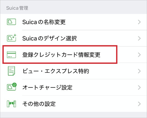 3.「登録クレジットカード情報変更」をタップし、ビューカードを登録