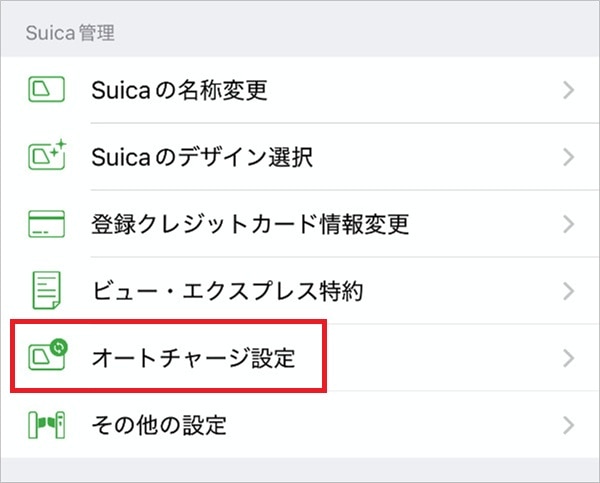 一方、iPhoneでは、以下の手順でオートチャージが設定できます。