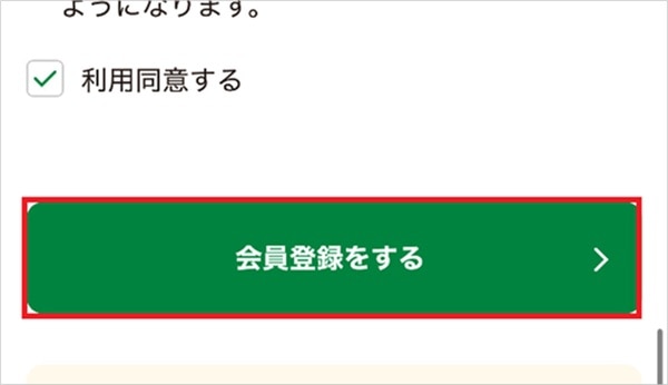 2.会員規約への同意や利用同意を確認・チェックして「会員登録をする」をタップする
