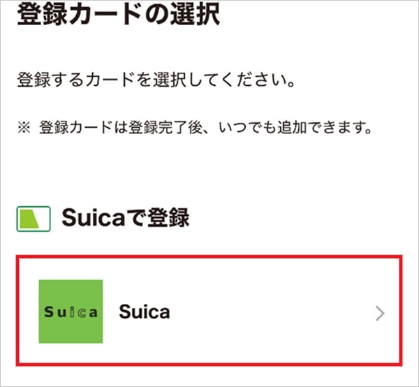 3.登録カードとして「Suica」を選択する