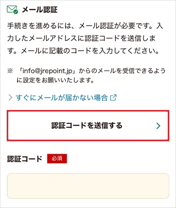 1.JRE POINT Webサイトで「新規登録」をタップする