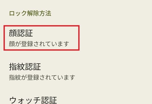 1.「設定」アプリ>「セキュリティとプライバシー」>「デバイスのロック解除」>「顔認証と指紋認証」の順にタップ