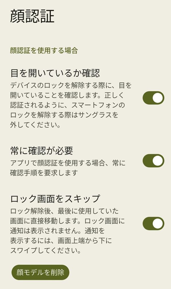 また、顔認証の設定画面では、以下のような項目も設定できます。
