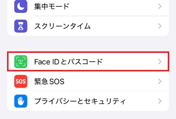 1.「設定」アプリ>「Face IDとパスコード」をタップ