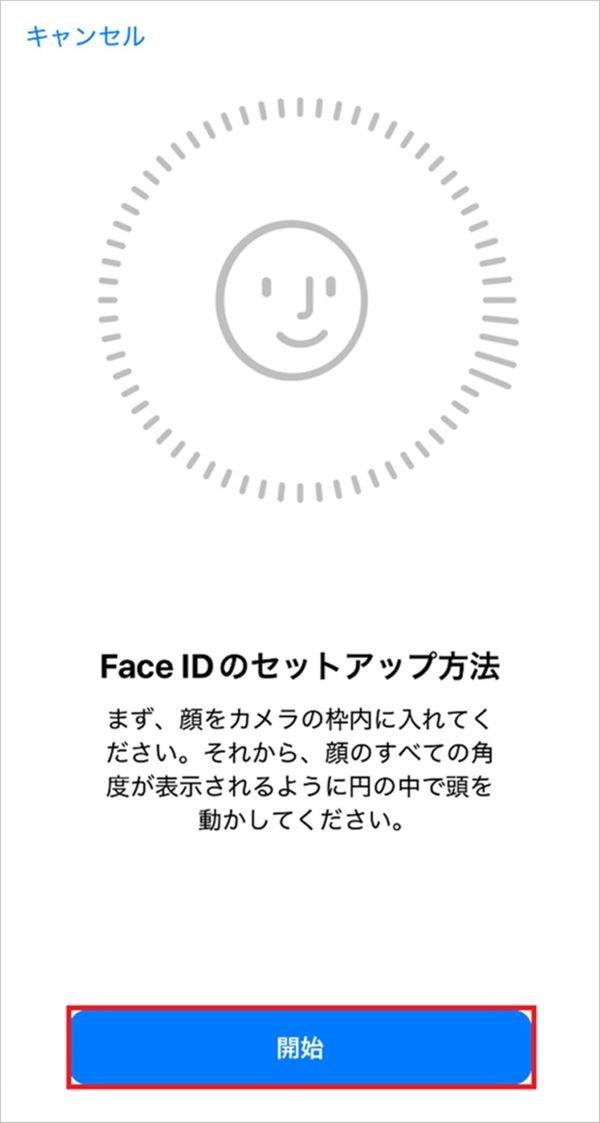 4.Face IDのセットアップ方法の画面が表示されるので「開始」をタップ