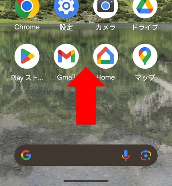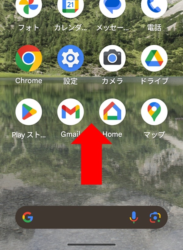 なお、ホーム画面に並んでいるアイコンは、アプリのショートカットです。インストール済みのアプリをすべて見るには、ホーム画面を上にスワイプします。