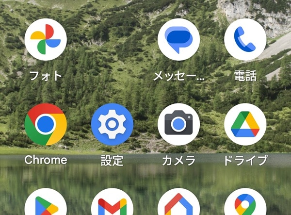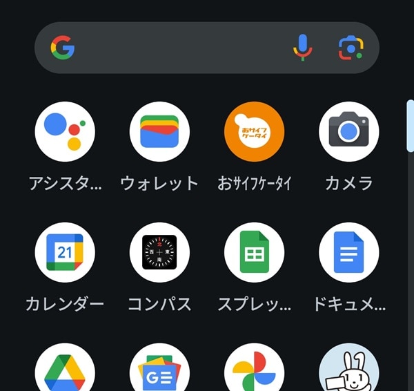 上にスワイプすると、ドロワー(アプリの一覧)の画面が開きます。こちらからインストール済みのすべてのアプリにアクセスが可能です。