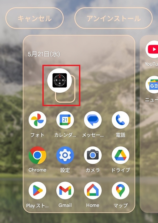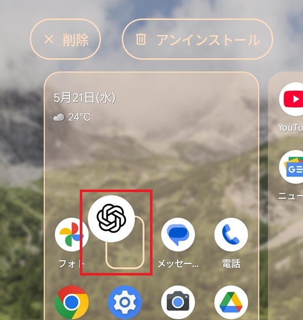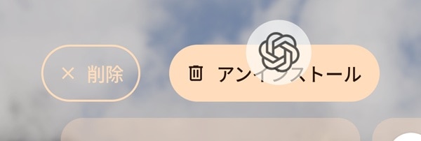 削除ではなくアンインストールの方にドロップすると、ホーム画面に表示されているアプリアイコンだけでなく、アプリ自体がアンインストールされます。