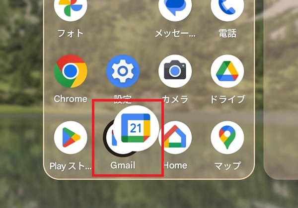 2.長押ししたまま少しドラッグすると、アプリを移動できる状態の画面になる