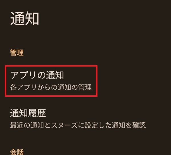 1.「設定」アプリ>「通知」>「アプリの通知」の順にタップする