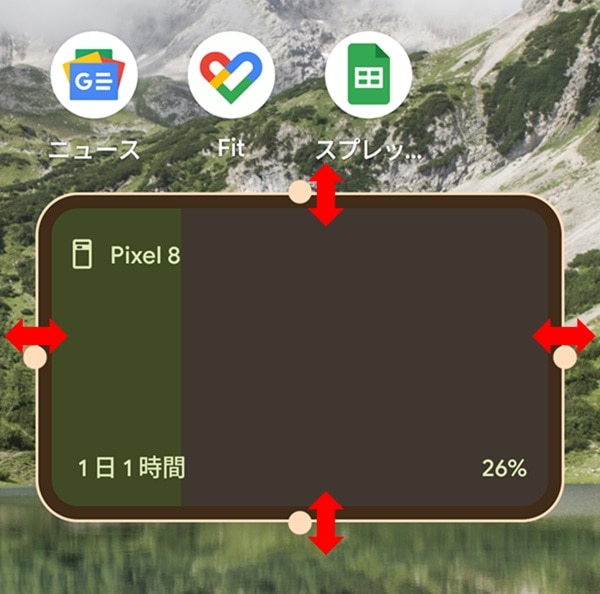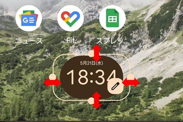 ホーム画面に時計(時計ウィジェット)を表示させている場合、以下の手順でサイズを変更できます。