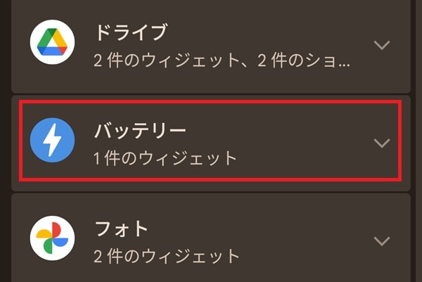 3.一覧からウィジェットを追加したいアプリをタップして、プルダウンを開く