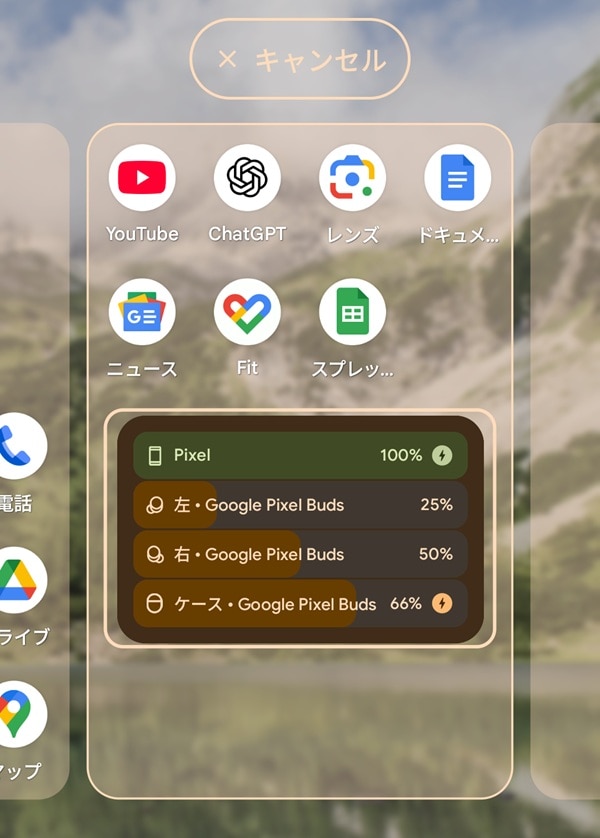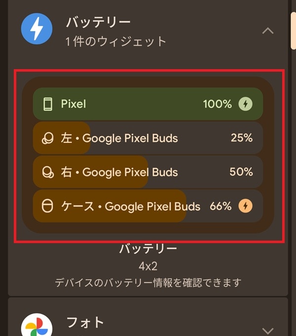 時計ウィジェットで時間を表示したり、バッテリーウィジェットでバッテリー残量を表示したり、さまざまなカスタマイズが可能です。