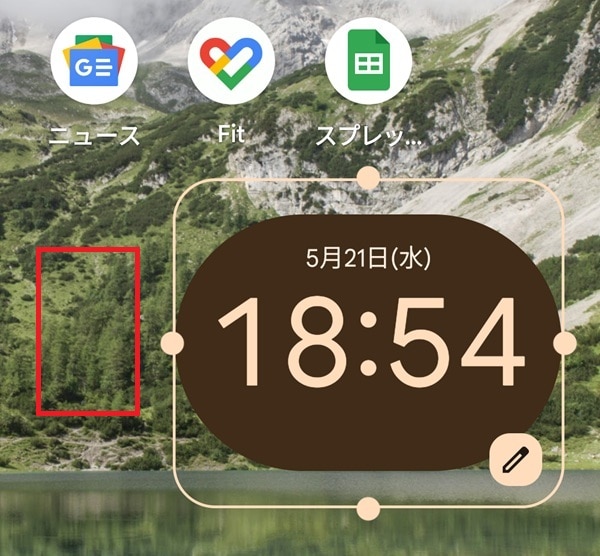ホーム画面に時計(時計ウィジェット)を表示させている場合、以下の手順でサイズを変更できます。