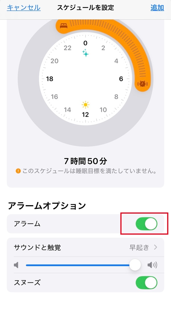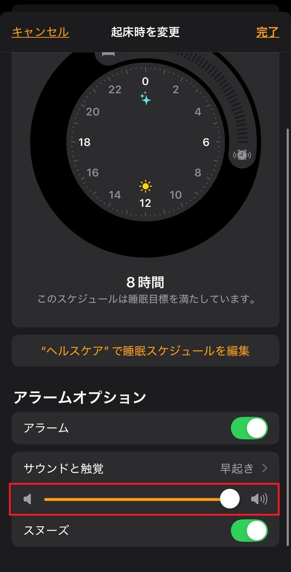 以下では、iPhoneのヘルスケアアプリで睡眠スケジュールを設定する手順と、アラーム音量だけを変更する手順を解説します。