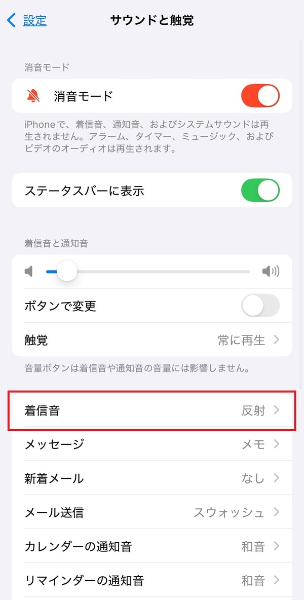 「設定」アプリから音量を変更する方法は以下のとおりです。