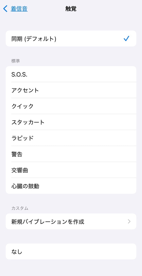 5.バイブレーションのパターンを選択するか、「新規バイブレーションを作成」をタップし独自のバイブレーションを作成する