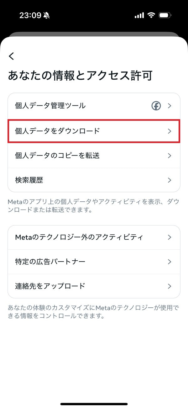 なお、個人データをダウンロードする場合は、スマホのストレージ容量を消費します。そのため、スマホのストレージ容量が限られている場合、フォローリクエストを確認した後、ダウンロードしたデータを削除しておくとよいでしょう。