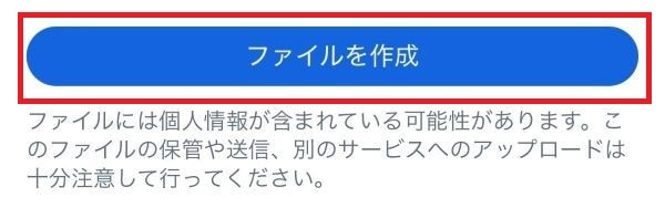14.「ファイルを作成」をタップし、完了メールが届くのを待つ