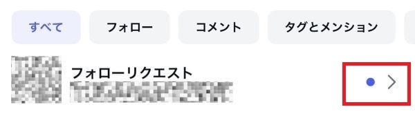 3.「フォローリクエスト」の項目に青い点マークの通知バッジや「○○からフォローリクエストがありました。」と表示されているか確認する