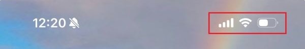 iPhoneが圏外かどうかは、画面上端に表示されているステータスバーから確認が可能です。