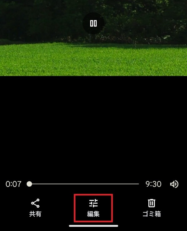 2.画面をタップして、表示されたメニューから「編集」をタップします。