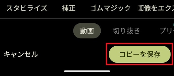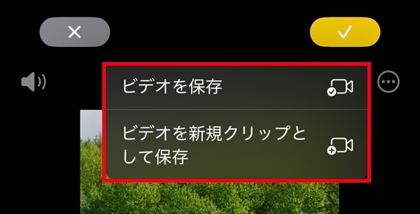・ビデオを保存:トリミング後の動画を上書きで保存
