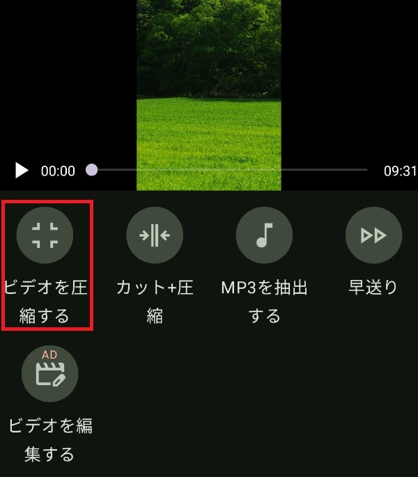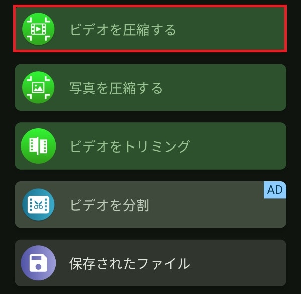 1.まずはアプリを開き、「ビデオを圧縮する」をタップします。