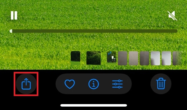 1.「写真」アプリで動画を開き、共有アイコンをタップします。