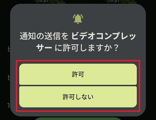 写真・ビデオへのアクセスは、スマホ内の動画を圧縮する場合、「フルアクセスを許可」を選択して設定します。