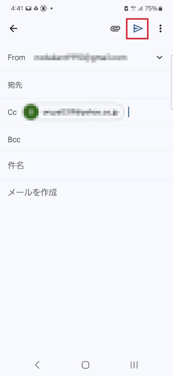 6.「Cc」欄にメールアドレスがあることを確認して「送信」をタップする
