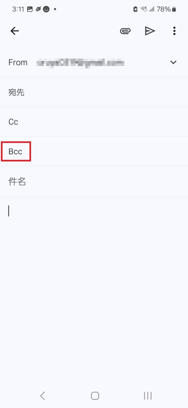 6.「Bcc」欄にメールアドレスがあることを確認し、宛先に主な送信先を入力する