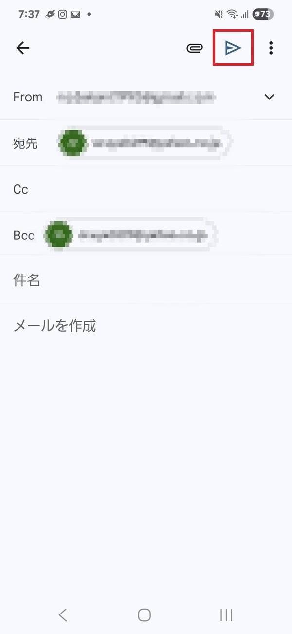 6.「Bcc」にメールアドレスがあることを確認し、宛先に主な送信先を入力する