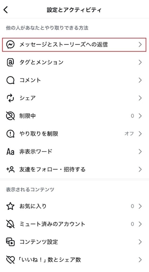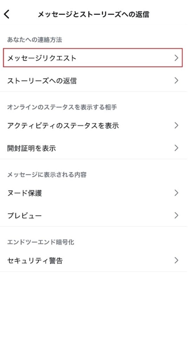 3.画面右上の「≡(メニュー)」>「メッセージとストーリーズへの返信」>「メッセージリクエスト」の順にタップする