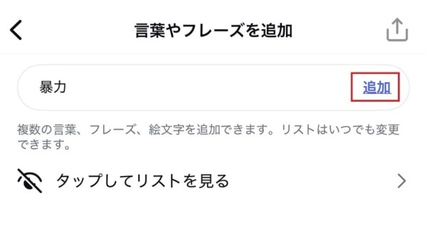 3.非表示にしたい言葉を入力>「追加」をタップする