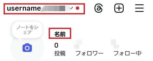 インスタでは、「ユーザーネーム」と別に「名前」を設定できます。プロフィール画面を開いたときに、一番上に表示されるのが「ユーザーネーム」、プロフィールアイコンの右または下に表示されるのが「名前」です。