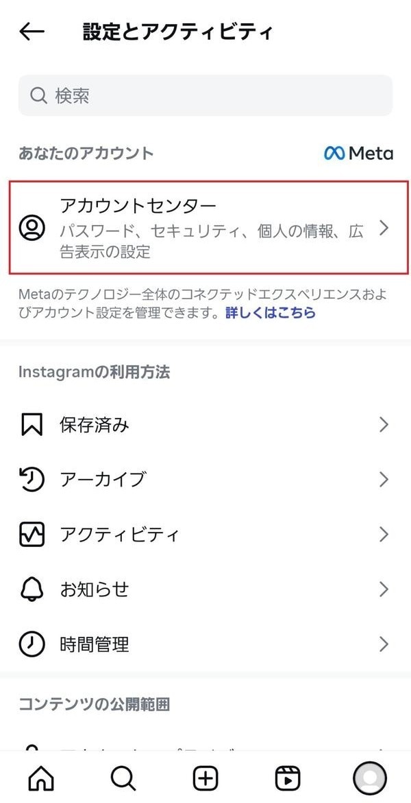 4.「アカウントセンター」をタップする