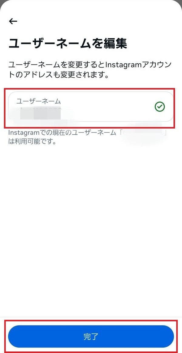 8.新しい「ユーザーネーム」を入力して「完了」をタップする(環境によっては「保存」)