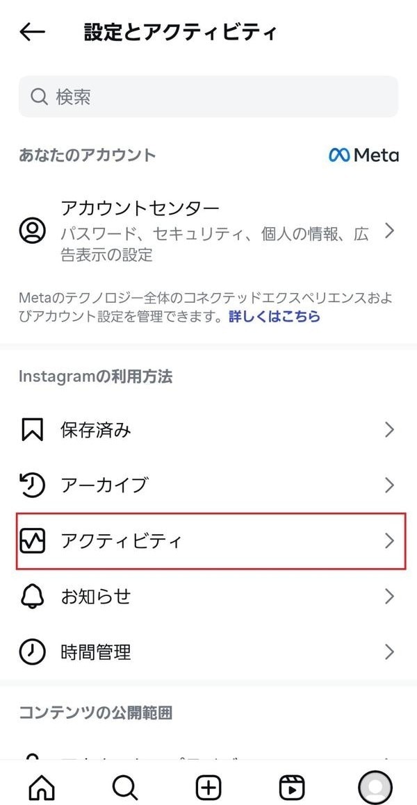 4.「アクティビティ」をタップする