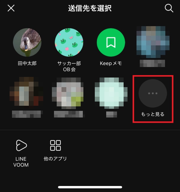 6.「送信先を選択」の画面で「もっと見る」をタップする(候補に表示されていればそちらから選択も可能)