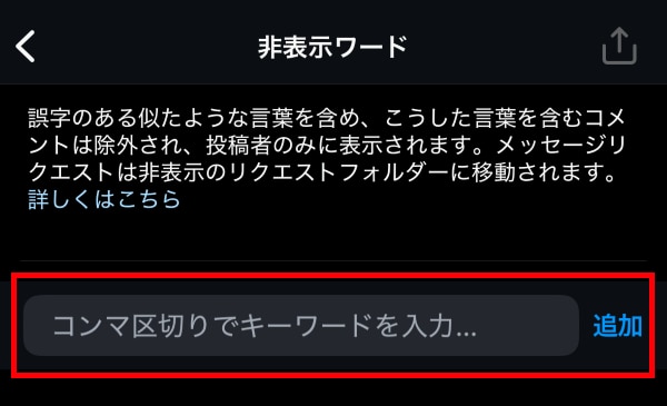 iPhoneの場合は、非表示ワードを単語で設定できます。