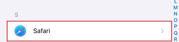 1.「設定」アプリ>「アプリ」>「Safari」>の順にタップする