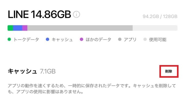 個々のアプリが保持しているキャッシュは、各アプリを操作して、個別に削除する必要があります。