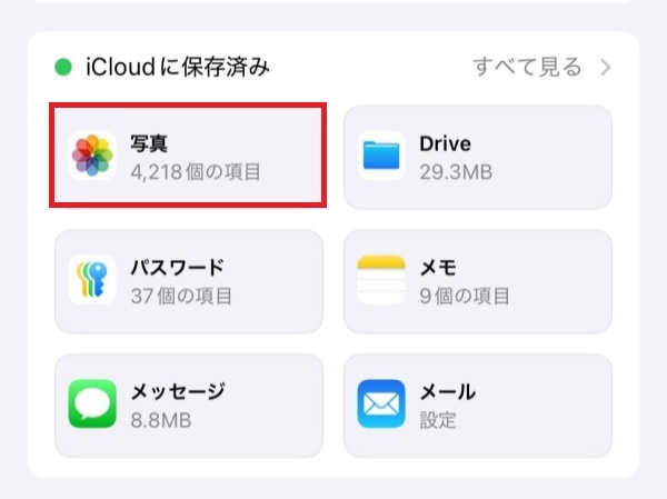 具体例として、「iCloud写真」を利用して内部ストレージの空き容量を増やす手順を紹介します。