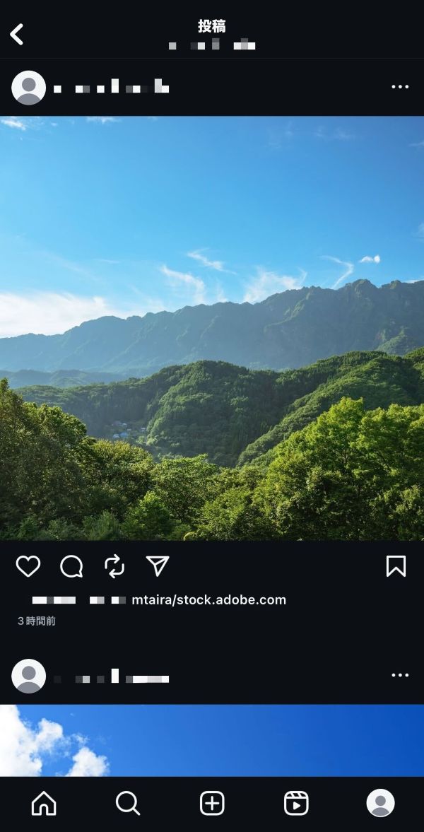 1.投稿画面にある、シェアアイコン(紙飛行機マークまたは吹き出しのアイコン)をタップする