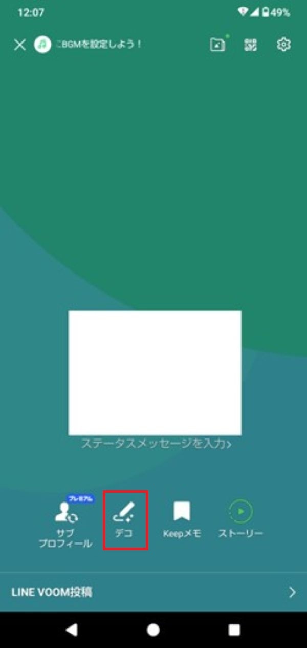 LINEのプロフィール画面下部にある「デコ」をタップしてインスタのURLを追加し、サイズ・位置などを調整して保存しましょう。