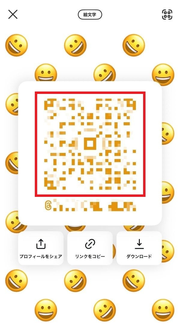 自分のプロフィール画面にある「プロフィールをシェア」をタップすると、QRコードを表示できます。友人が目の前にいる場合は、自分のスマホ画面にQRコードを表示させて、その場で読み取ってもらいましょう。